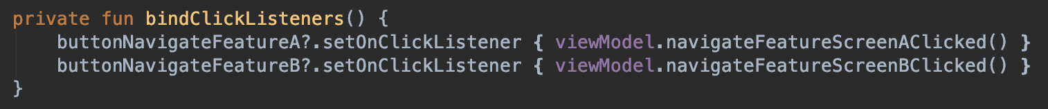 We inject our Routes to ViewModel class. From this ViewModel, we can navigate to both A and B screens. And when button clicked, we are also setting up the data we want to pass to each screen. After making route ready, we are ready to pass it to LiveData. That LiveData is being observed by the Activity.